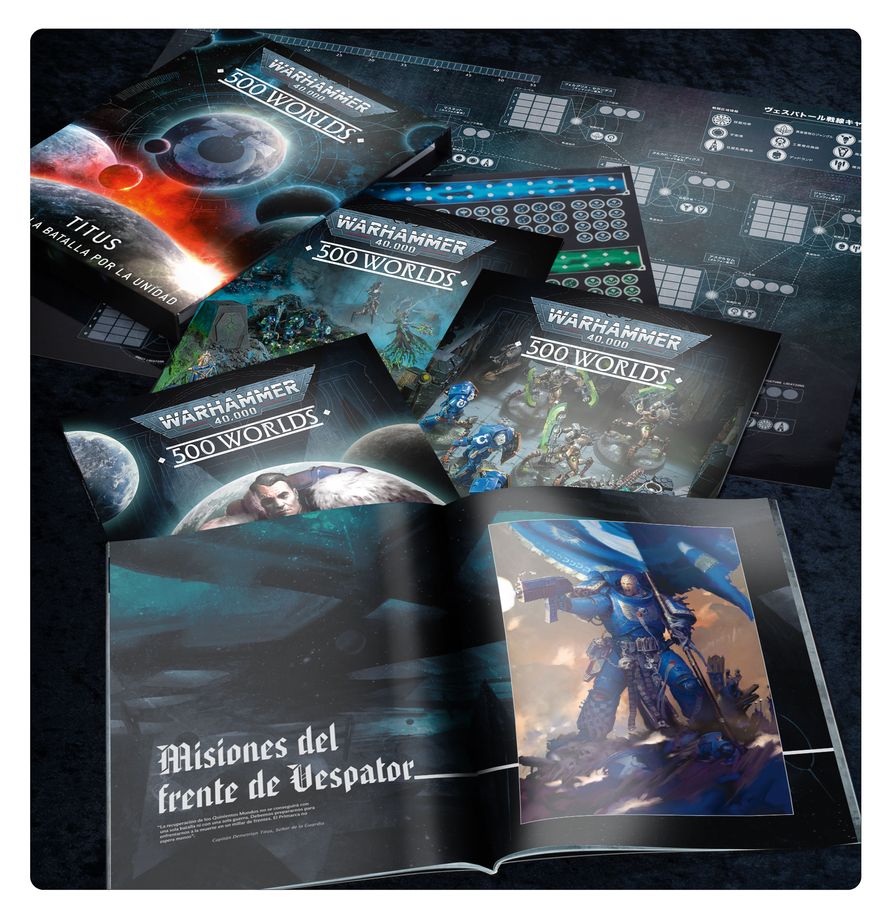 – 500 Worlds: Titus – Guerra en el frente de Vespator – Un libro de tapa blanda de 56 páginas que presenta una campaña narrativa sobre el conflicto global, dando a cada jugador la oportunidad de dejar su huella, además de incluir seis nuevas misiones.