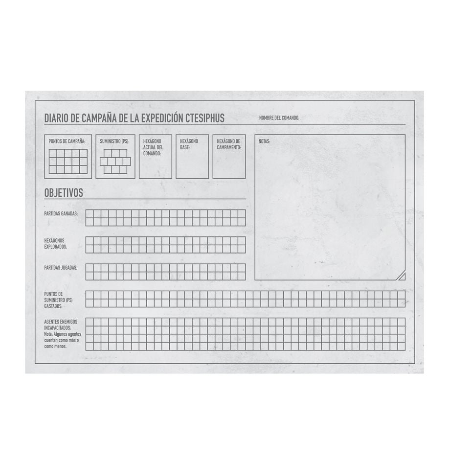 – 1 bloc de registro de campaña: Registra fácilmente el progreso de tu comando durante tus campañas con 40 hojas de registro arrancables, cada una de 210 mm x 140 mm.